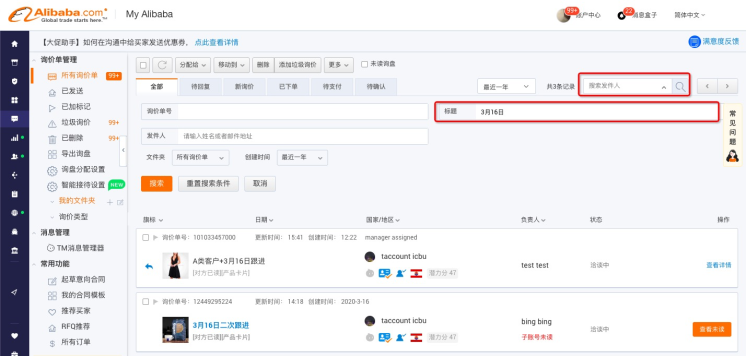 2.標題搜索,快速篩選出當天需要跟進的詢盤