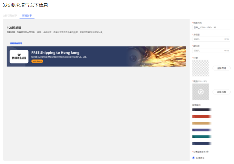 創(chuàng)意名稱 : 填寫創(chuàng)意名稱,方便后續(xù)查找(不會(huì)展示給買家)